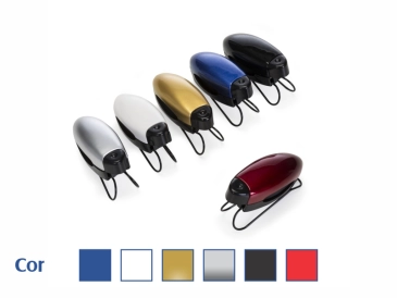 Pulseira emborrachado com mosquetão redondo conectado a um cartão retangular flexível que se encaixa na parte interna da capa de celulares, próximo à entrada para carregamento USB.
