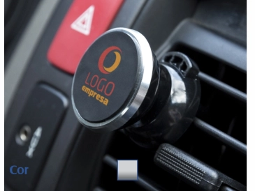 Suporte veicular magnético com seis imãs de alta imantação, contém botão para abertura da presilha. Acompanha duas fichas metálicas.