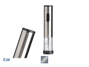 Saca-rolhas elétrico com LED e cortador de lacre. Parte superior em alumínio e parte inferior acrílica, possui compartimento superior com tampa para 4 pilhas AA (não acompanha pilhas), painel com iluminação LED e botões para extração e remoção de rolhas. No modo extração a área acrílica é iluminada pelo LED. Acompanha cortador de lacre. OBS.: NÃO AUNDAR NO LIQUIDO