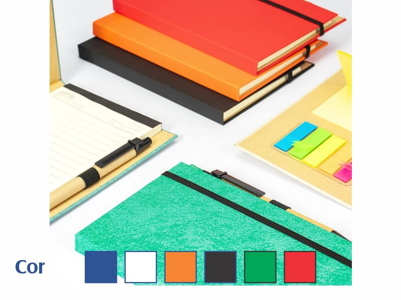 Acompanha uma caneta esferográfica com carga azul de 1.0mm e acionamento por clique, corpo em papelão e demais componentes em plástico.